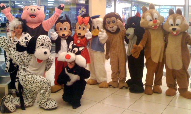 Ospiti d’onore … i cartoni animati! Incredibili mascottes (quelle originali con le maschere giganti) interagiranno con grandi e piccini salutandoli, accarezzandoli e coccolandoli. Ciascun bambino reagirà in maniera diversa quando si troverà di fronte il “vero” Topolino, Minnie e Paperino, ma quello che è certo è che la magia e lo stupore che questi personaggi sanno creare fungerà da denominatore comune per tutti! Nella versione più completa è inclusa anche la cuccia di pluto dalla quale fuoriesce musica per bambini collegata (il dispositivo è a batteria e quindi l’animazione resta completamente itinerante). Ideali anche per parate carnevalesche.