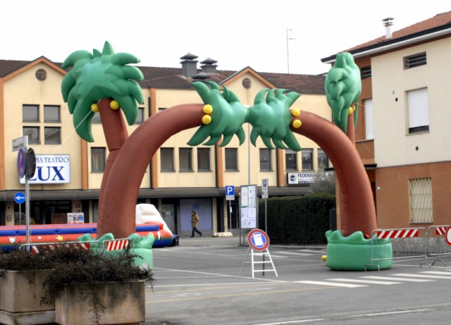 Fantasiose e Coloratissime, le nostre scenografie gonfiabili sono adatte nei casi in cui l’esigenza è valorizzare qualsiasi tipo di evento (soprattutto carnevalesco) con elementi di notevole impatto scenico. In base all’esigenza si potrà scegliere l’elemento adatto all’occasione: dai Fly Man (figure che tramite 2 ventole effettuano volteggi e scenografie dinamiche) alti fino a 9 mt, all’Uomo Ragno (altezza 4 mt), La Mongolfiera (personalizzabile con vostro striscione) ecc. Disponiamo anche di una bellissima MaxiZebra alta più di 8 Mt da poter posizionare in Piazza, davanti ad un centro commerciale ecc. Oltre ad un forte effetto scenografico, essa fungerà anche da richiamo e/o da punto di riferimento in quanto è visibile anche a grandi distanze. Siamo forniti infine anche di archi gonfiabili in varie dimensioni e colori: c’è anche il bellissimo Arco delle Palme!.