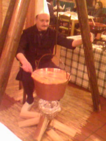 Il nostro animatore offrirà a tutti i presenti una squisita porzione di polenta. Essa potrà anche eventualmente essere insaporita secondo i gusti del cliente che potrà scegliere tra vari condimenti (polenta ai formaggi, al sugo di lepre ecc.). La bellissima postazione scenografica a tema campagnolo comprende anche un caratteristico bivacco per la consegna della polenta.