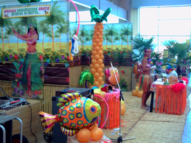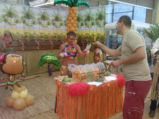 La nostra animatrice vestita in bikini offrirà a tutti i presenti freschissimi spiedini di frutta, preparati al momento e personalizzati in base ai gusti del cliente. La bellissima postazione scenografica a tema caraibico farà da cornice a questa graditissima degustazione