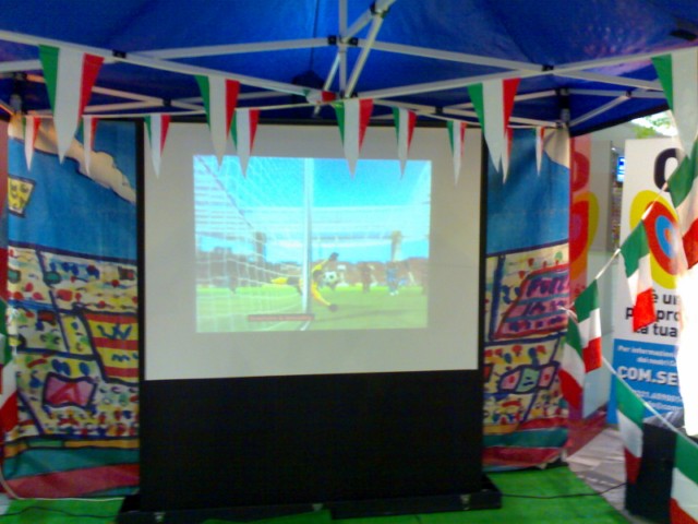 Un’ entusiasmante animazione a tema calcio composta da tre postazioni: una allestita scenograficamente dove vi troverete il “sempre verde” calcio balilla (disponibili fino a 4), un maxischermo con il videogioco del calcio per avvincenti sfide e infine il “goal” (postazione anche da esterno).