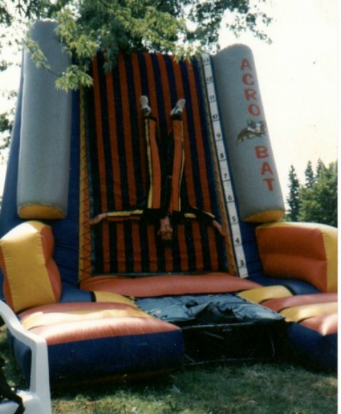 Grazie ad un trampolino elastico e ad un imponente gonfiabile con la parete in velcro si potrà, indossando le nostre speciali tute, saltare contro la parete rimanendo attaccati ad essa. Una apposita striscia graduata segnalerà il concorrente che arriva più in alto. Incluso nostro operatore per assistenza gioco.