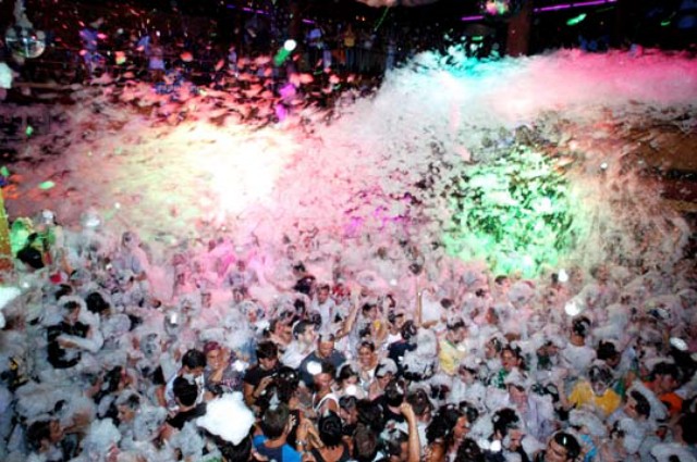 La piacevole sensazione di ballare immersi nella schiuma. Prodotta in grande quantità da un apposito macchinario. Non macchia, non tossica, documentazione da laboratorio.
