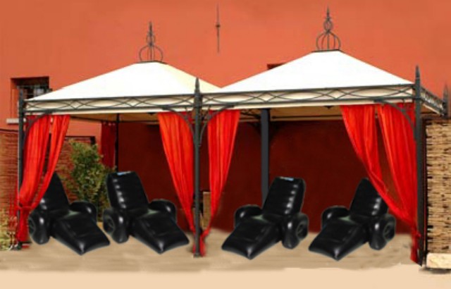 N°4 poltrone massaggianti gonfiabili che doneranno benessere e sollievo a ciascun invitato. Il noleggio include anche n°2 gazebo a tema (ingombro totale mt 6x3).