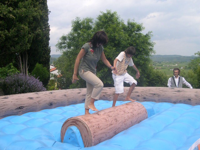 Attrazione che si addice molto nelle feste country. La struttura consiste in un gonfiabile m 5x5. I bimbi dovranno cercare di rimanere il più possibile su un tronco di gommapiuma posto al centro del gonfiabile. Naturalmente il tronco, tramite un motore, è dotato di movimento rotatorio.
