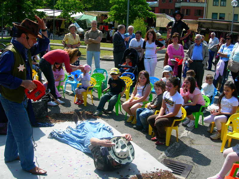 Uno divertentissimo spettacolo interamente a tema western. In una bella postazione scenografica il nostro Luky luke coinvolgerà grandi e piccini con performances varie di magia, giochi western a premi, balli, sketch e tante altre sorprese! Impianto audio professionale incluso.
