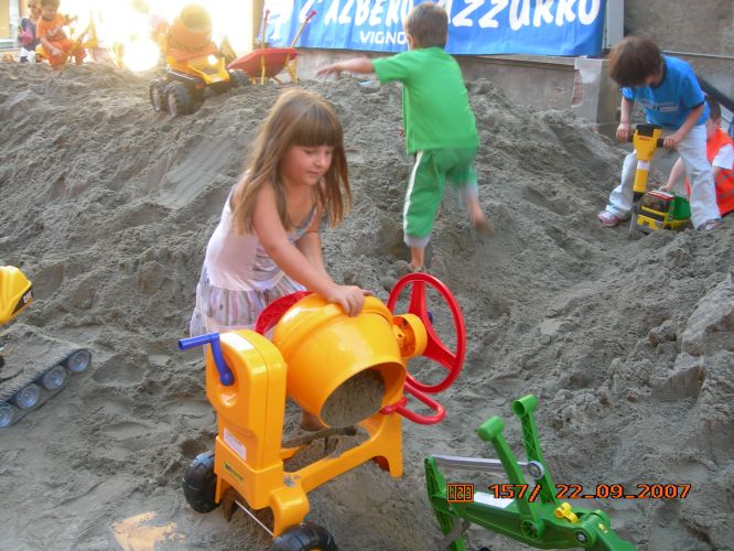 Allestiremo un vero e proprio minicantiere per bambini con attrezzature e giochi professionali con la sabbia. Ruspe, minicamion, betoniere, martelli pneumatici, trattori con rimorchi e tanto altro. La fornitura comprende anche i vestiti a tema (con tanto di elmetto) per tutti i bimbi che parteciperanno. Un’animazione coinvolgente che stimolerà la creatività e fantasia di tutti i piccoli “lavoratori”! Per ovvie ragioni di costi di logistica e trasporto la fornitura della sabbia deve essere effettuata dal cliente.