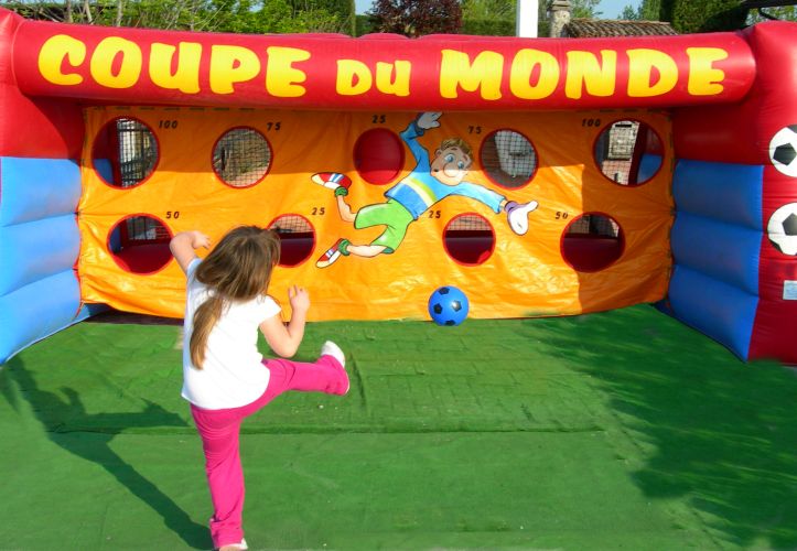 Una porta gonfiabile sulla quale Vi è una serigrafia di portiere in tuffo. L’abilità dei concorrenti sarà quella di centrare i fori presenti nella serigrafia, a ciascuno dei quali corrisponde un punteggio.