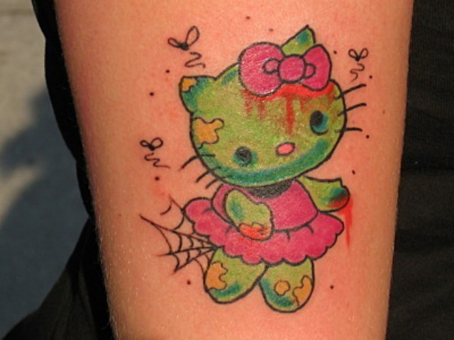 I presenti potranno scegliere tra tanti disegni di tatuaggi (zucche, pipistrelli, fantasmini, ecc.) e farselo eseguire in diretta a mano libera (anche a colori!) dal nostro tatuatore. Senza uso di aghi o cose similari. Nella versione più completa è compreso anche un TV collegato ad una telecamera.