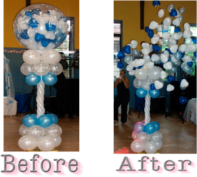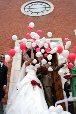 Si tratta di palloni giganti addobbati in maniera molto elegante e riempiti all interno con tantissimi palloncini più piccoli (a richiesta a forma di cuoricino). All uscita dalla chiesa (o al taglio della torta ecc.) gli sposi scoppiano i palloni. Immaginate la sorpresa quando si libereranno nell aria innumerevoli palloncini a forma di cuoricino. Dopo l’esplosione i nostri sorprendenti Fly Love potranno essere utilizzati al ristorante o villa come decorazione (il pallone gigante che esplode viene sostituito con un pallone gigante in alluminio a forma di cuore.