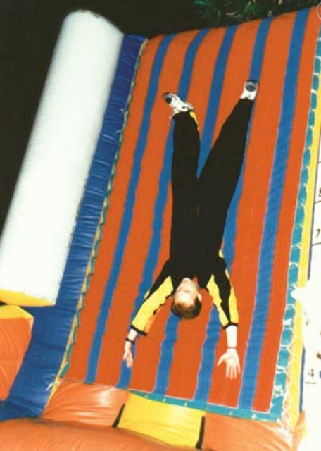 Grazie ad un trampolino elastico e ad un imponente gonfiabile con la parete in velcro si potrà, indossando le nostre speciali tute, saltare contro la parete rimanendo attaccati ad essa. Una apposita striscia graduata segnalerà il concorrente che arriva più in alto. Incluso nostro operatore per assistenza gioco.