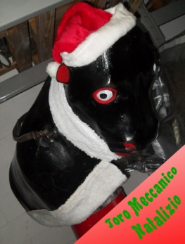 Grazie al nostro simulatore di toro il pubblico potrà sfidarsi in una emozionante gara il cui obiettivo sarà di rimanere in sella il più possibile. La particolarità sta nel fatto che il toro è addobbato ... a Natale! Si presenta infatti con un simpatico cappuccio Natalizio ed è contornato dal classico pelo bianco tipico del vestito di Babbo Natale. A completare il tutto Vi è una scenografia composta da staccionate addobate a Natale e altri elementi scenografici a tema. A gestire questo intrattenimento, ovviamente, un simpatico gnometto (o altro personaggio Natalizio secondo disponibilità: Natalina, Pupazzo di neve ecc.). Nella versione più completa il miglior Cowboy vincerà uno stupendo soggiorno premio in alcune località esclusive del mondo. Il nostro animatore, tramite battute, intermezzi comici ecc., trasformerà questo evento in una vera e propria festa natalizia che coinvolgerà sia i protagonisti che il pubblico presente. Le scenografie, la musica natalizia ecc. creeranno una magica e spettacolare atmosfera, divertita dalle numerose e spettacolari cadute dei concorrenti.