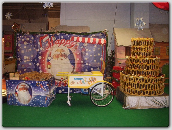 Vengono allestite n°3 bellissime postazioni scenografiche gestite ognuna da un personaggio a tema natalizio che regala squisitissime prelibatezze: C’è infatti Babbo Natale con lo zucchero filato, lo Gnomo con i pop corn e la Natalina con le Crepes alla nutella (o marmellata) Le crepes saranno opportunamente personalizzate a tema Natale con decorazioni di Alebri e stelle (o altro) realizzati con lo zucchero a velo. A richiesta si può aggiungere una quarta postazione gestita dal pupazzo di neve (o altro personaggio) che regala caramelle, oppure panettoni, oppure ancora deliziose tortillas calde con salsetta al formaggio.