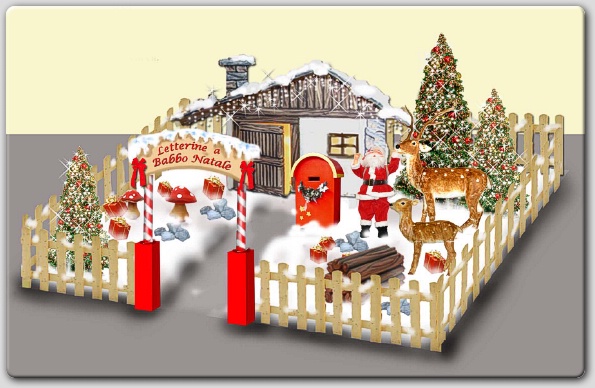 L’animazione è caratterizzata da una bellissima scenografia di una magica ambientazione natalizia in cui i bimbi potranno scrivere e imbucare le letterine a Babbo Natale, scrivendo i propri sogni e desideri. Una Natalina e un simpatico Folletto gestiranno l’animazione con intrattenimenti vari. Sono inclusi anche minitavolini, seggioline, carta, buste da lettera, penne e l’impianto per fare il magico “marchio a cera” per la chiusura delle buste, oltre ad un impianto audio con diffusione di musica natalizia.