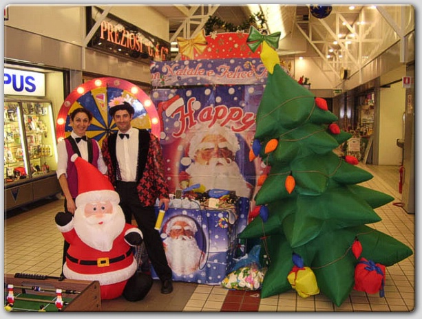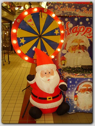 Attrezzato con impianto audio (incluso) e con una bellissima ruota verticale (girevole), un simpaticissimo animatore vestito a tema condurrà uno dei giochi più conosciuti e apprezzati dal pubblico di tutte le età. Ogni ospite potrà sfidare la fortuna girando manualmente la nostra ruota: a seconda di dove si fermerà la “linguetta” di cuoio posta sul telaio della struttura, il concorrente potrà scoprire che cosa ha vinto. Ovviamente il gioco è destinato all’uso promozionale, quindi gratuito (distribuzione controllata di gadgets ecc.) La ruota è completamente personalizzabile senza alcun aumento di prezzo! Il pacchetto comprende anche un impianto audio, un divertente animatore e una simpatica valletta.
