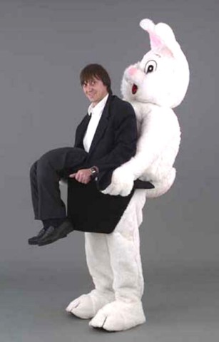 Un cuoco pasticcione cavalca una simpatica gallina nel tentativo di cucinarla, oppure un coniglio ha fatto apparire un divertente prestigiatore dal suo enorme cilindro … Grandi e piccini si chiederanno come sia possibile ciò che stanno vedendo! Si tratta ovviamente di illusioni ottiche, realizzate grazie ai brevetti adottati dai nostri magnifici costumi, tutti ovviamente a tema pasquale. E’ possibile prenotarli singolarmente o in formazione gruppo per una strabiliante animazione itinerante!