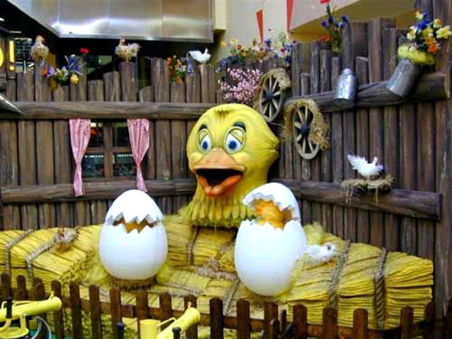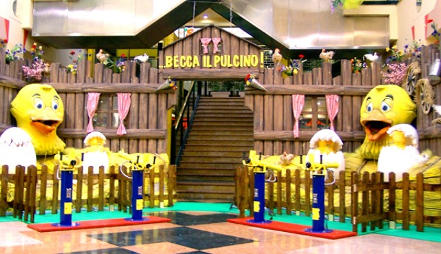 In una magnifica scenografia pasquale vi è una grande baita con all’interno pulcini e/o uova motorizzati (i pulcini aprono e chiudono la bocca, mentre le uova si aprono e si schiudono automaticamente). Il divertimento di bimbi e adulti sarà riuscire a centrare l’uovo o il pulcino, facendo uso di appositi cannoncini ad aria compressa che sparano morbide palline di spugna. Il vincitore del gioco sarà quello che riuscirà a far entrare il maggior numero di palline in un tempo determinato. Un bravissimo animatore, coadiuvato da un animatore vestito da coniglietto (o altro soggetto a tema pasquale) coordinerà questo spettacolare gioco. Sono inclusi anche impianto audio, effetti scenici e gadgets per i partecipanti.