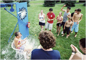 Uno dei giochi più divertenti al mondo! Un palloncino viene riempito con ciò che è appropriato (acqua, fango, coriandoli, farina ecc.). Esso sarà posizionato nell’apposito cestello posizionato sopra una persona (quella che ti è più “simpatica”) seduta. Quando il bersaglio viene colpito, il palloncino si apre liberando il contenuto sulla persona. Perfetto per qualsiasi evento esterno o interno. Prezzo:EURO 900