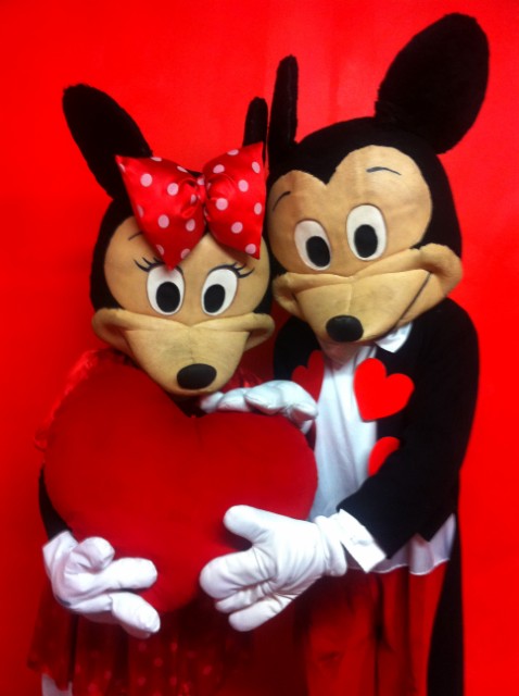 Animazione itinerante a tema S. Valentino di ottimo impatto sul pubblico. Una coppia storica di cartoni animati (il nostro cliente può scegliere fra diverse possibilità, ad esempio Topolino e Minnie, Cip e Ciop ecc.) interagirà con i presenti regalando loro squisiti cioccolatini di S. Valentino. I costumi sono quelli “deluxe” con le maschere giganti, opportunamente modificati a tema. Oltre ai due personaggi, sono inclusi nel nostro pacchetto anche i cioccolatini. Una tenera animazione gradevole. Una tenera animazione simpatica e gradevole, adattissima ad ogni tipologia di pubblico e in qualsiasi location.